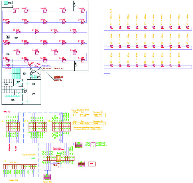 - Odkazy na napájení a případné výstupní vazby na požárně bezpečnostní systémy.