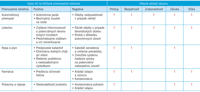 Výhody, ktoré možno dosiahnuť pomocou UI, nájdu uplatnenie na rôznych úrovniach obchodných procesov a v rôznych oblastiach naprieč rôznymi výrobnými vertikálami. Patria sem automobilový, letecký a kozmický priemysel, ťažba a spracovanie ropy a plynu, farmaceutický priemysel a priemysel potravín a nápojov. V tab. 1 sú porovnané jednotlivé jin a jang UI v priemyselnej automatizácii naprieč rôznymi vertikálami vo výrobe.